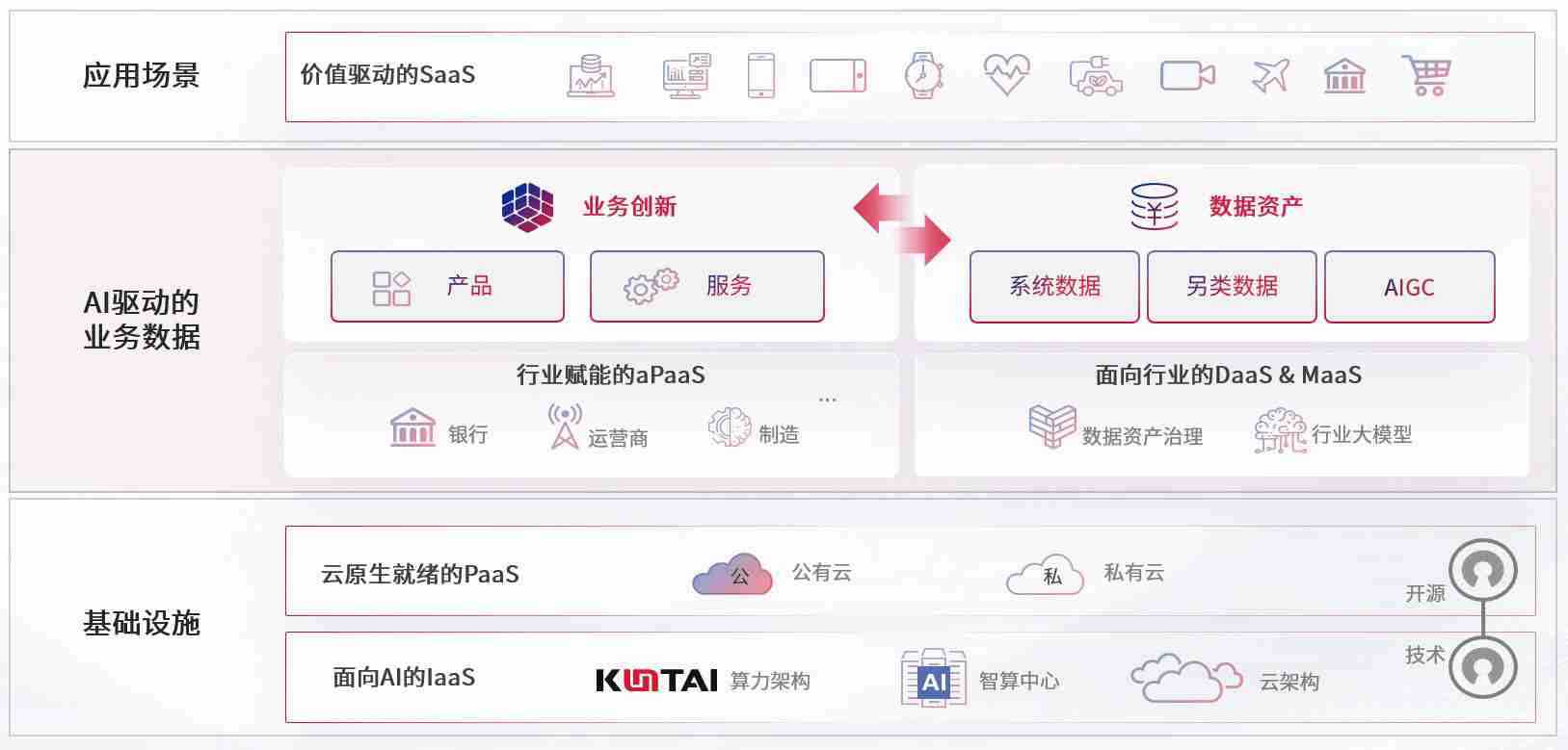 数字时代,,围绕企业数字化转型的关键要素,,,,k豆钱包数码开创性的提出数云融合战略和技术体系框架,,,,着力在云原生、、、、数字原生、、、、AI原生和信创产业上架构产品和服务能力,,为处在不同数字化转型阶段的快消零售、、、汽车、、、金融、、、医疗、、、、政企、、、、教育、、、运营商等行业客户提供泛在的敏捷IT能力和融合的数据驱动能力,,,构建跨界融合创新的数字业务场景和新业务模式,,助力企业级客户建立面向未来的核心能力和竞争优势,,,,全面推动社会的数字化、、智能化转型升级。。。。